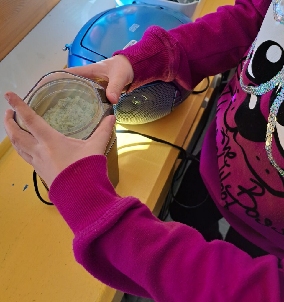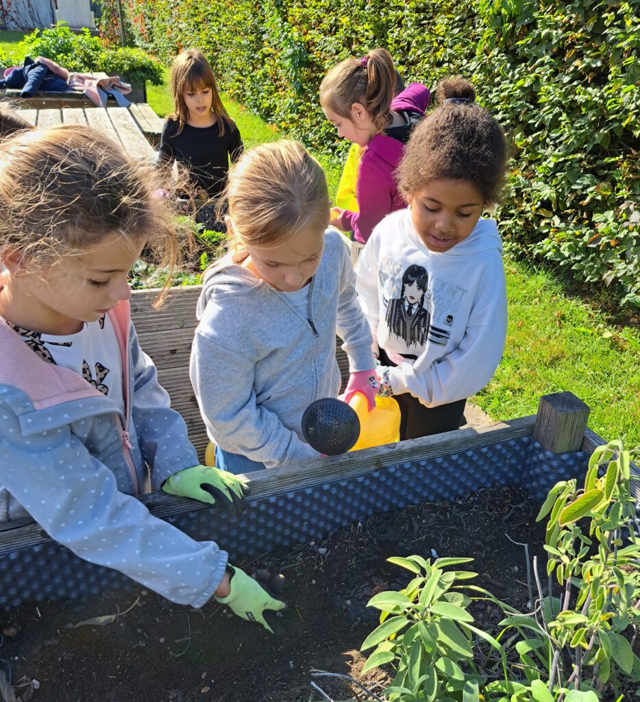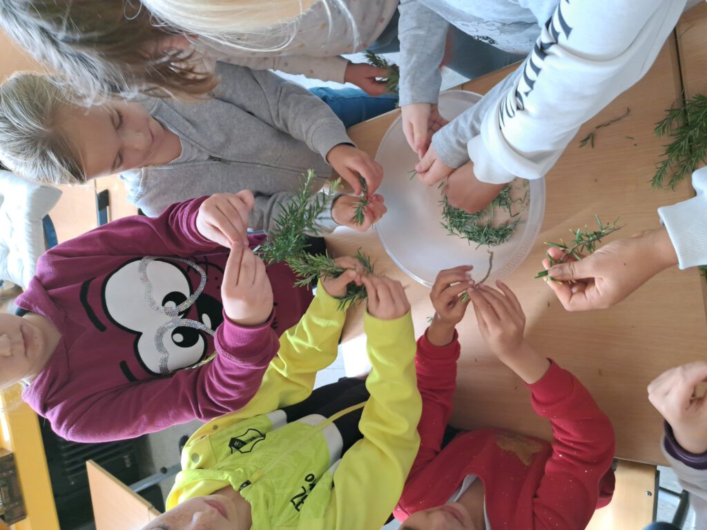 Die 2. Klassen pflanzten fleißig Knoblauch in der Kräuter-AG an und stellten Rosmarinsalz her.
