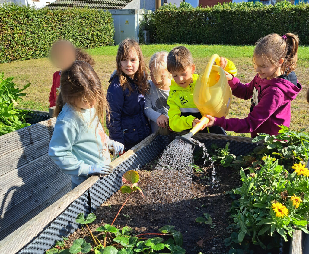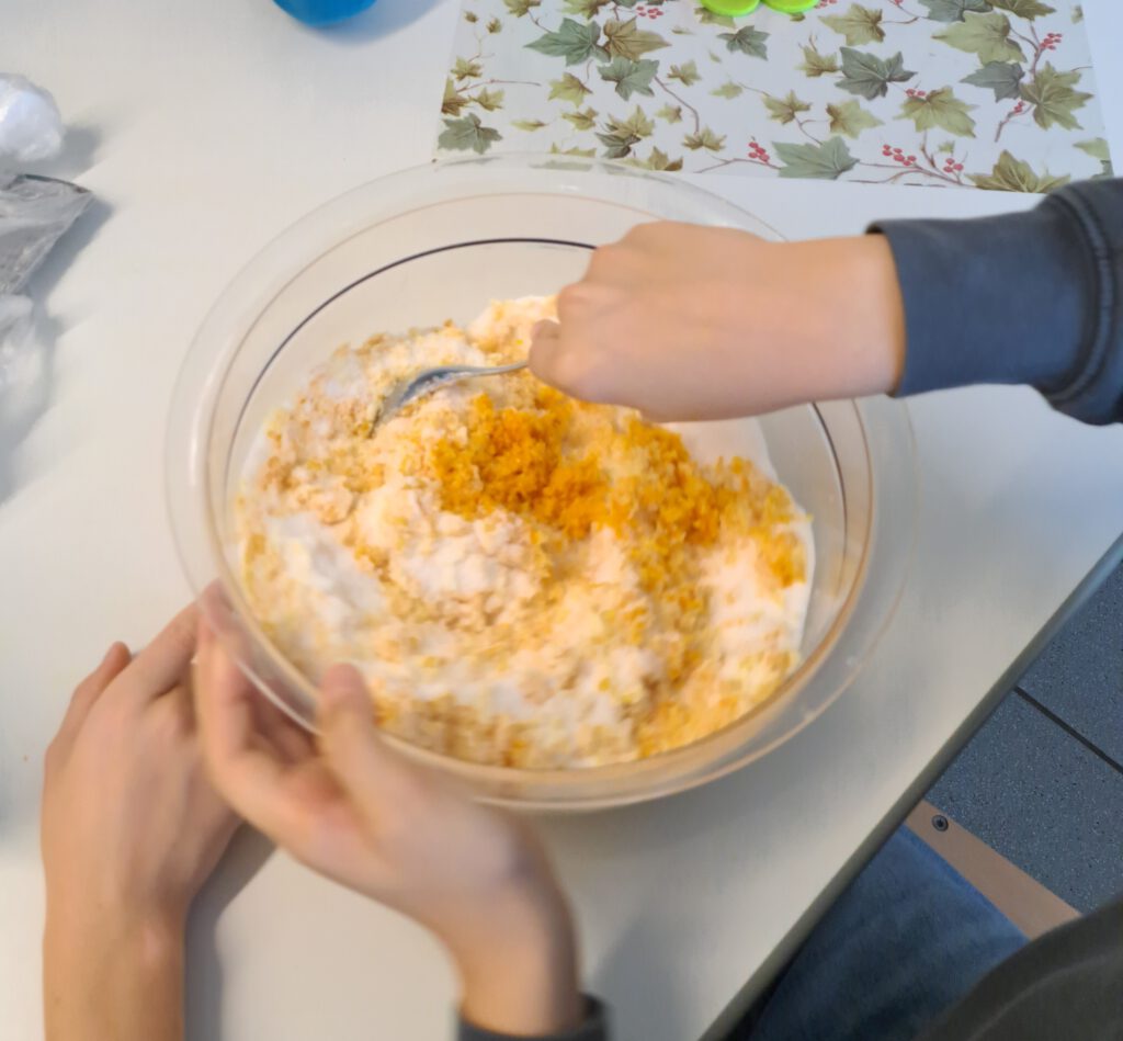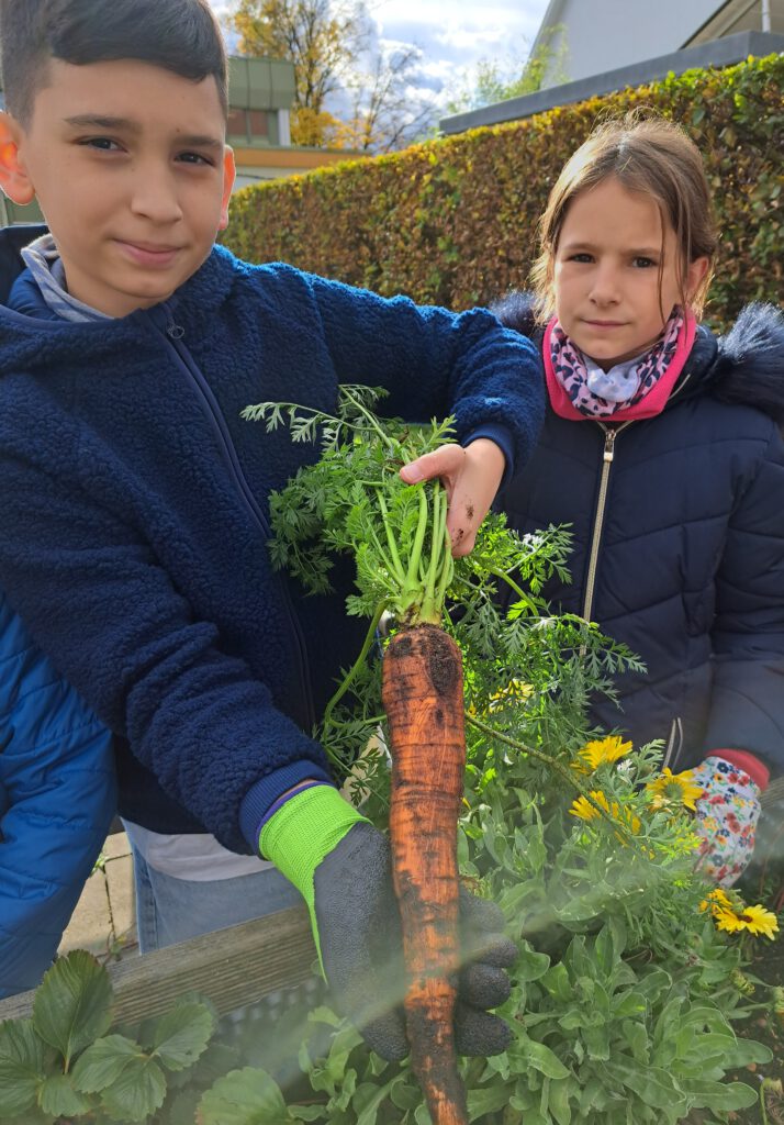 Die Viertklässler bereiteten herrlich duftenden Orangenzucker zu und backten Kräuterpizza mit Karotten, Kartoffeln und Kräutern, die sie vorher stolz aus den Hochbeeten geerntet hatten.